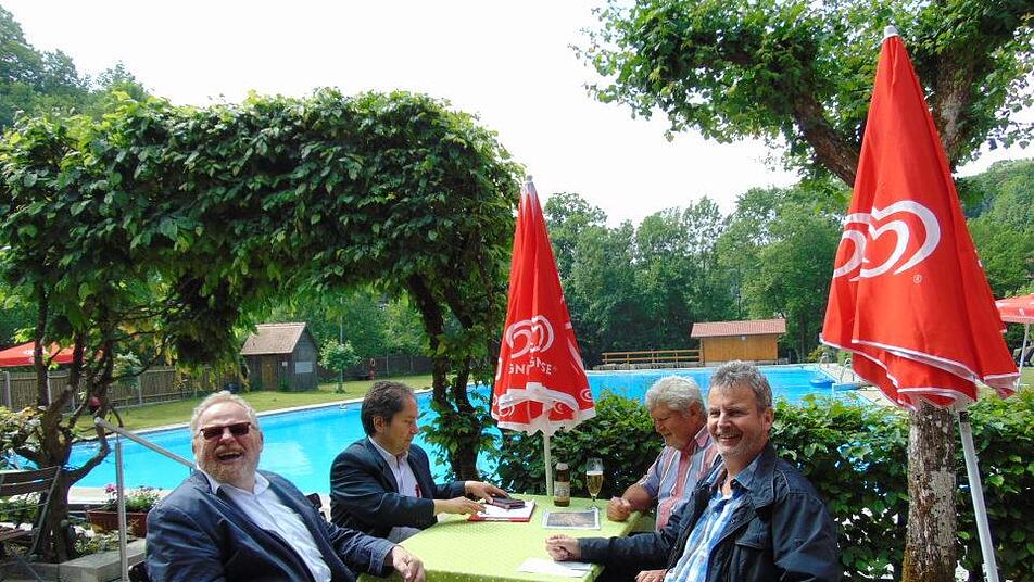 Über ein Förderprogramm informierte der Bayerische Gemeindetag. Doch baulich dürfe noch nichts beschlossen werden, solange das Programm nicht beschlossen sei. Bürgermeister Hans-Jürgen Nekolla, einige SPD-Anhänger der Stadt, Sabine Bader, Vorsitzende des Fördervereins Freibad, und die Stadträte Heiko Kracker und Jürgen Theiler (GBL) wollen von dem Landtagsabgeordneten hören, ob die Stadt Gräfenberg Chance auf Förderung für ihr Freibad habe. "Ja", antwortet Klaus Adelt spontan.