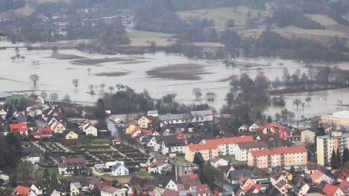 Schneeschmelze und Regen ließen Flüsse über die Ufer treten. Das Wiesenttal gleicht einer riesigen Seenlandschaft. Alle Zuflüsse der Wiesent sind randvoll. Ob sich die Situation weiter verschärft hängt maßgeblich von der prognostizierten Witterung ab.