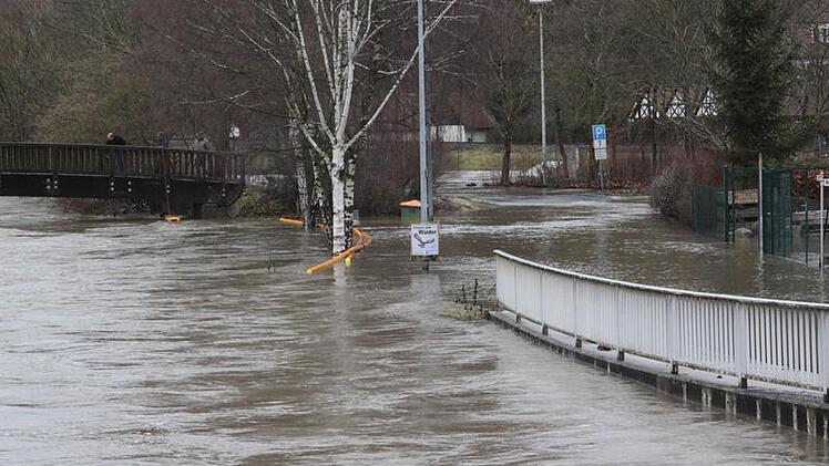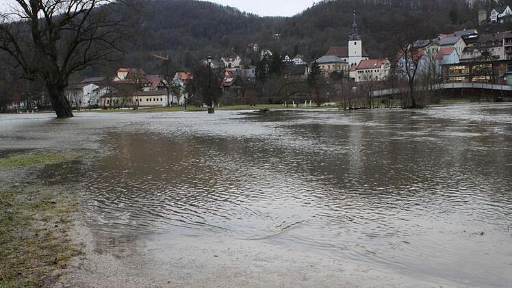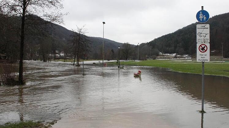 Die Hochwassersituation bleibt weiter angespannt. Dieses Resumee zieht das Wasserwirtschaftsamt Kronach. Während der Pegel der Trubach bei Pretzfeld gestern wieder sank, wälzte sicheine riesige Hochwasserwelle der Wiesent auf Ebermannstadt zu. Trotz Flutmulde musste der Parkplatz gegenüber dem Rathaus gesperrt werden. Der Skaterplatz lag komplett unter Wasser.