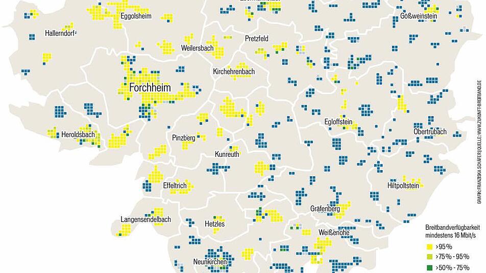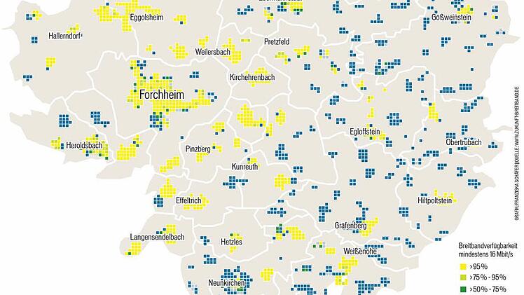 Nach einem von Kreiswirtschaftsreferent Andreas Rösch organisierten Infonachmittag für Bürgermeister wurde der Startschuss für das Förderprogramm, das bis 2018 geht, gegeben. "Wir sind sehr zufrieden, denn 24 von 29 Gemeinden sind in das Verfahren eingestiegen und in Eggolsheim hat der Ausbau mit der Telekom konkret begonnen", erklärt Rösch. Und Hermann Ulm ergänzt: "Wir freuen uns über das Programm, doch leider wird es pro Gemeinde gedeckelt." Kleine Gemeinden könnten dadurch die Fördergelder gar nicht ausschöpfen, während diese bei großen Gemeinden wie Gößweinstein gar nicht ausreichen würden.