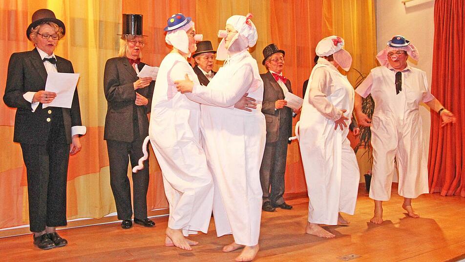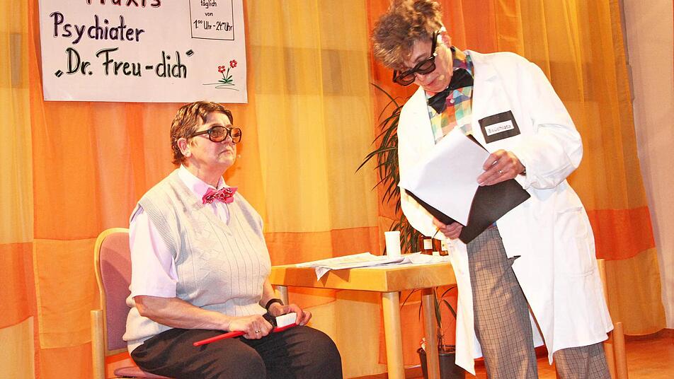 Weitere Sketche des langen Faschingsabends waren der Zuckertest in der Apotheke nach einer Verkehrskontrolle, der Tanz "Die Schweinepolka", der Sketch "Feierabend" von Maria Neuner und Hedwig Singer, die Bütt "Das Leben der modernen Frau" von Sabine Neuner, die "Schnabelbremsen" mit "Franken sucht den Supernarren" und "Herr Pimperl beim Psychiater" von und mit Rosi Heinlein und Babette Neuner.