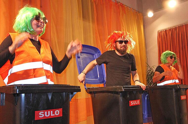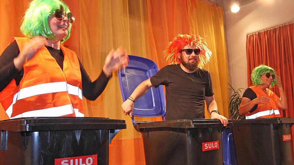 Das absolute Highlight kam wie immer kurz vor Mitternacht: Drei singende Mülltonnen besetzt mit Fröschen, die zum Lied "Mahna-Mahna" quaken, dargestellt von Sabine Neuner, Pater Igor und Babette Neuner. Alle Aktiven sangen danach den Song vom Bruttosozialprodukt.