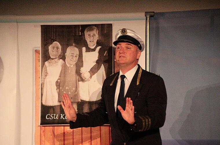 Vor marinem Ambiente begrüßt Stimmen-Imitator Wolfgang Krebs die Gäste zur "Wahlfang-Party der CSU". Im Seehoferschen Zick-zack-Kurs zwischen Power-Yoga und Werbesports durchstreift die Stimmungszitrone, äh -kanone die Untiefen der Politik. Sein Problem: "Woher soll ich wissen, was ich denk, bevor ich g'hört hab, was ich sag'?"