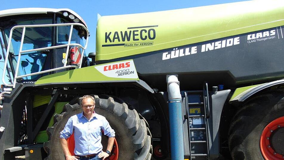 Der gesamte Platz der Firma ist mit landwirtschaftlichen Maschinen gefüllt. Ein Riesenmähdrescher steht auf der Wiese mit einem Schneidwerk, das mindestens zehn Meter misst. Das Besondere an dem Mäh- und Grasdrescher sind die Räder, die keine mehr sind, sondern Ketten. "Das ist bodenschonender", erklärt ein Mitarbeiter von Uwe Krämer.