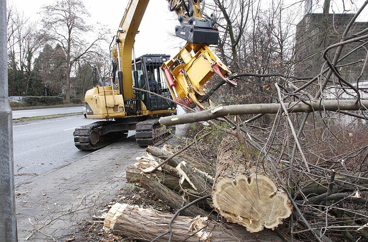 Ein Bagger mit einer Astschere im XXL-Format kappt die Baumstämme entlang der Adenauer-Alle und der Theodor-Heuss-Allee als seien es Streichhölzer. Die Arbeiten sind Teil einer Pflegemaßnahme, die das Staatliche Bauamt Bamberg in Abstimmung mit dem Gartenamt der Stadt Forchheim vom 28. Januar bis 11. Februar entlang der Bundesstraße 470 im Stadtgebiet von Forchheim durchführt.