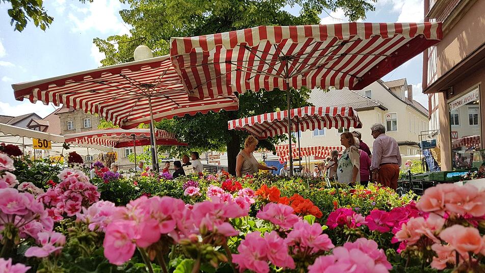 Beim Blumenhändler-Stand nebenan brummt hingegen das Geschäft. Viele Leute nehmen sich kleine Pflänzchen und Setzlinge mit nach Hause. "Für uns ist jetzt im Mai Hochsaison zum Pflanzen", erläutert die Blumenhändlerin aus Priesendorf (Landkreis Bamberg). Besonders beliebt sei heuer die gelb-orangene Ringelblume, die als "Luggi - unser Sunnyboy" verkauft wird. Diese Ringelblumen-Sorte wurde zur bayerischen Blume des Jahres 2018 erkoren. "Das Wetter ist heute auch wirklich schön, wir hoffen nur, dass kein Gewitter kommt".