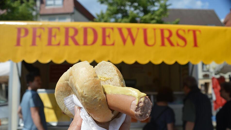 Die Coburgerin hat mitten auf dem Paradeplatz ihren Pferdewurst-Stand eröffnet. Sie ist auf jedem Forchheimer Jahrmarkt vertreten. Am Sonntag sei nur ein Viertel der üblichen Kundschaft im Vergleich zu anderen Markttagen gekommen. Der Mai-Markt sei traditionell schlechter besucht. Heuer liege der Besucherrückgang außerdem am