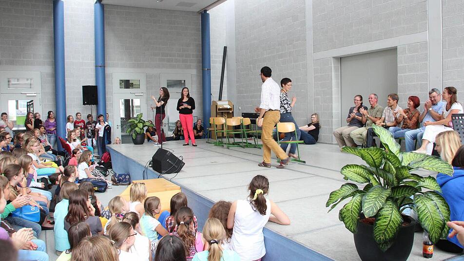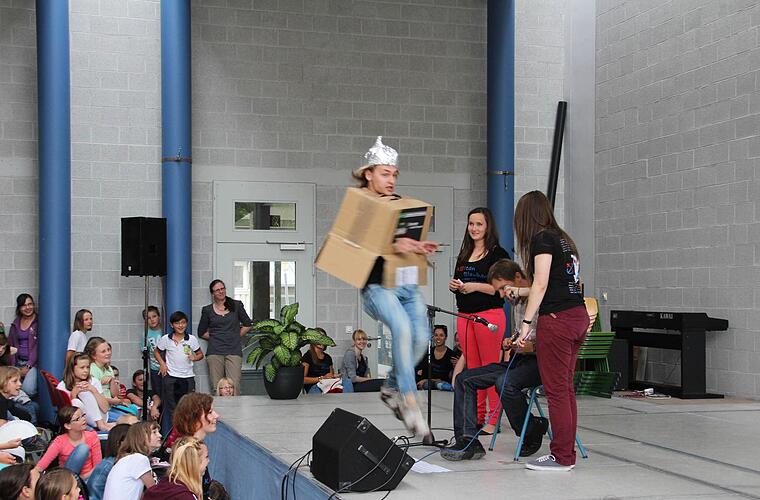In der vollbesetzten Aula wurden gleich mehrere zum Blaubär-Helden des Tages ernannt. Einer davon war Sven, oder auch: "Ach, das ist nur unser Pausenclown", wie Moderatorin Chiara erklärte, als er im Astronauten-Pappkarton-Starlight-Express-Stil über die Bühne rollte, während sich sein Lehrer an der Ukulele versuchte. Na, immerhin: Einer schien zu Scherzen aufgelegt zu sein.