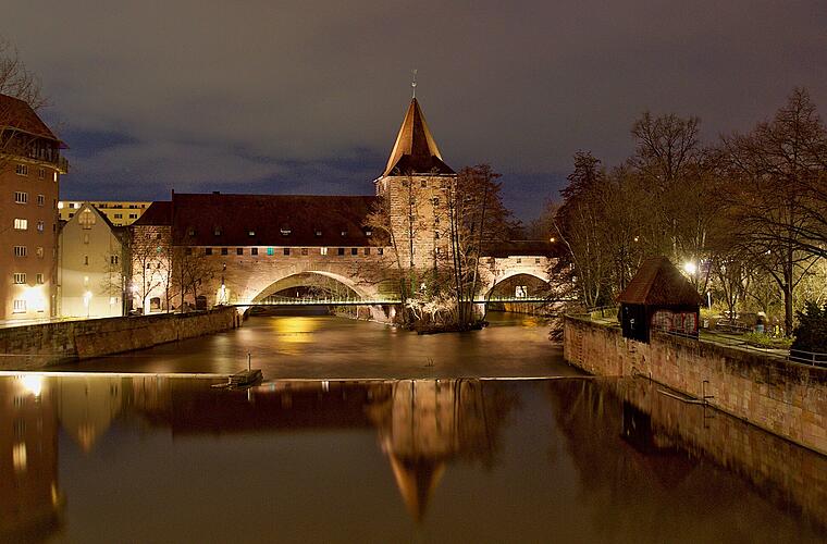 Eine historische überdachte Holzbrücke, die den Unschlittplatz auf der Lorenzer Seite mit der Insel des Trödelmarktes verbindet. Ursprünglich wurde er zwischen 1320 und 1325 errichtet, um die beiden Stadthälften Sebald und Lorenz zu verbinden. Der Name stammt vom benachbarten Henkerturm, der einst als Wohn- und Arbeitsstätte des Nürnberger Henkers diente. Heute ist der Henkersteg Teil der Historischen Meile Nürnbergs und ein beliebtes Fotomotiv, das die mittelalterliche Atmosphäre der Stadt bewahrt.