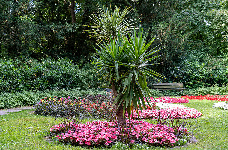 Rosengarten, Fontänenhof, Rhododendrongarten und der Städtische Schulgarten bieten eine abwechslungsreiche Pflanzenpracht. Ergänzt wird das Angebot durch Spielplätze, eine Freilichtbühne und das Stadtparkcafé.