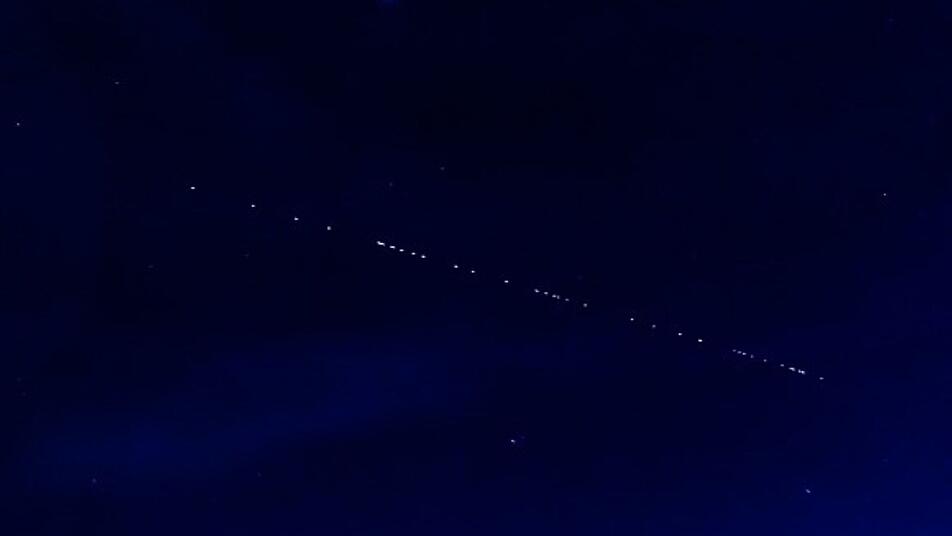Im Netz finden sich immer mehr Bilder von leuchtenden "Perlenketten" am Nachthimmel. Wer zur richtigen Zeit nach oben schaut, kann sehen, wie die Lichter in beachtlichem Tempo hinter einander her ziehen. "Hat 'das' sonst noch jemand beobachtet? Das sah echt krass aus", schrieb beispielsweise ein Mann aus Bergisch-Gladbach am Dienstag (10. Oktober 2023) um 21.07 Uhr auf Facebook. Wie Sternwarte Schweinfurt auf ihrer Webseite berichtet, lösen die Lichter "zuweilen Ufo-Alarm aus".
