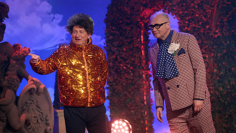 Volker Heißmann und Martin Rassau stehen während der Generalprobe für die BR-Sendung "Fastnacht in Franken" auf der Bühne.