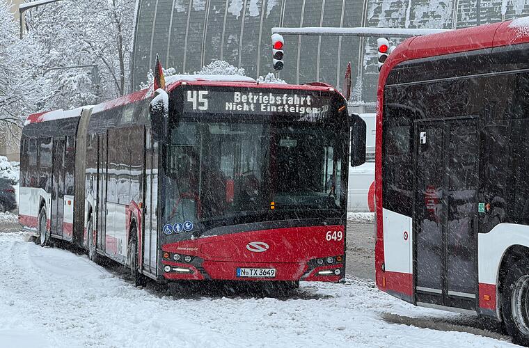 Die Nürnberger VAG teilte mit, dass es aufgrund von Schneefall bis zu Dienstagmittag der Tramverkehr in der Stadt eingestellt sei. Die Buslinien würden nur eingeschränkt bedient werden. Die U-Bahn ist den Angaben zufolge davon nicht betroffen.