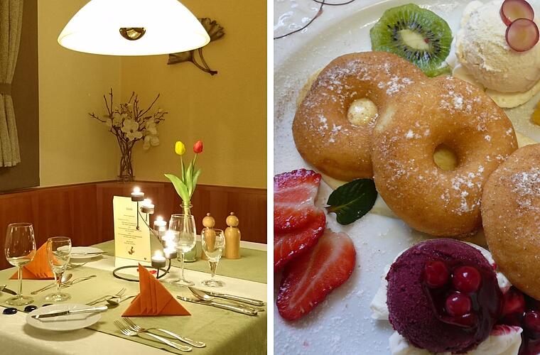 Die Küche ist für ihre klassischen regionalen Gerichte bekannt. Zudem stehen Räumlichkeiten wie der Wintergarten, die Zirbelstube und ein großer Saal für Veranstaltungen unterschiedlicher Größe zur Verfügung.