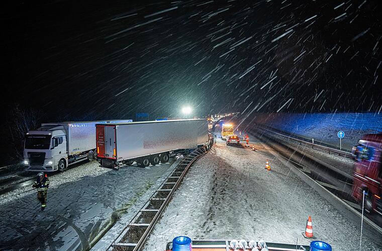 Um 1.40 Uhr fuhr ein 57-Jähriger mit seinem Sattelzug in Richtung Würzburg. Etwa einen Kilometer nach der Anschlussstelle Höchstadt-Nord geriet er auf schneeglatter Fahrbahn mit seinem Gespann in die Außenschutzplanke. Beim Gegenlenken stellte sich der Sattelzug quer und blockierte die gesamte Fahrbahn in Richtung Würzburg kurzzeitig komplett. Der Fahrer wurde nicht verletzt. Der Sachschaden liegt bei in etwa 6500 Euro.