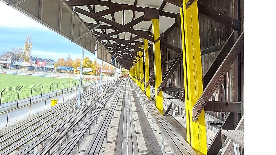 Geschütztes Denkmal: Holztribüne in der Sportstätte Grüne Au in Hof