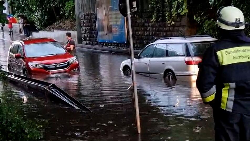 Unterführung in Nürnberg geflutet - Feuerwehr rettet Menschen aus Autos