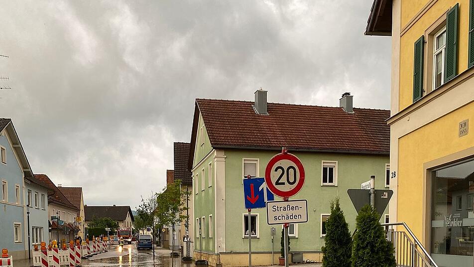 Hochwasser stellt Feuerwehr in Ebern vor Herausforderung - Bagger muss Straße in Goßmannsdorf aufreißen