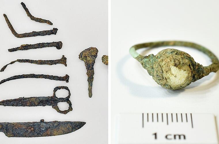 Knöpfe, Nadeln, Textilreste: Bei Grabungen in Franken stießen Forscher auf zahlreiche Reliquien aus der Zeit des 17. Jahrhunderts. Vor allem ein ungewöhnliches Grab beschäftigt die Experten.