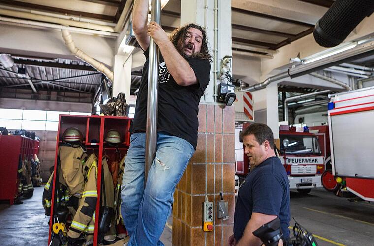 Ohne Schweiß kein Preis. Hat sich auch Bembers gedacht und bei der Berufsfeuerwehr in Fürth für seine "Rock and Roll Garage" ein Praktikum absolviert. "Von knapp nach zehn bis kurz vor vier Uhr hat das Schnupperpraktikum des Comedian bei uns gedauert", sagt Feuerwehrchef Christian Gußner. Ob Bembers das Zeug zum Feuerwehrmann hat, darüber ist sich Gußner nicht so sicher.
