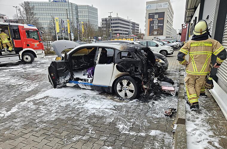 Auf einem Supermarktparkplatz in Fürth ist am Samstag (17. Januar 2026) ein E-Auto in Brand geraten.