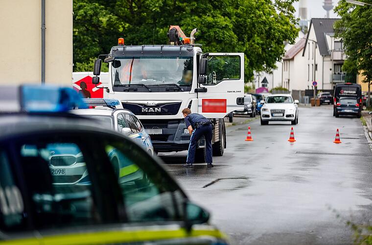 Als ein Kind im Kreis Fürth plötzlich auf die Straße läuft, versucht ein Lkw-Fahrer noch zu bremsen. Dass die Straße vom Regen nass ist, hilft dabei nicht.