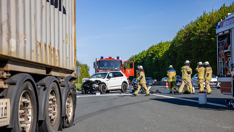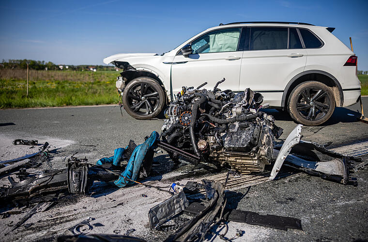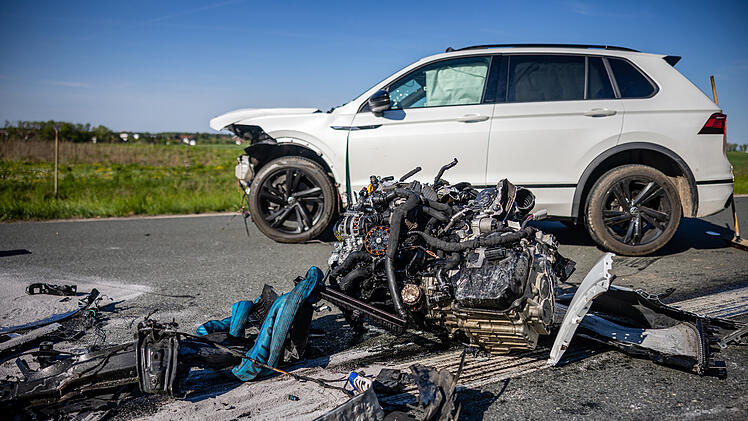 Bei einer Kollision zwischen einem Auto und einem Lkw ist ein Motorblock aus dem Wagen herausgerissen und ein Fahrer leicht verletzt worden. Laut Polizei fuhr der 39-jährige am Dienstagnachmittag (29. April 2025) gegen 16.20 Uhr auf der Südwesttangente in Fürth auf den Anhänger des vorausfahrenden Lastwagens auf.