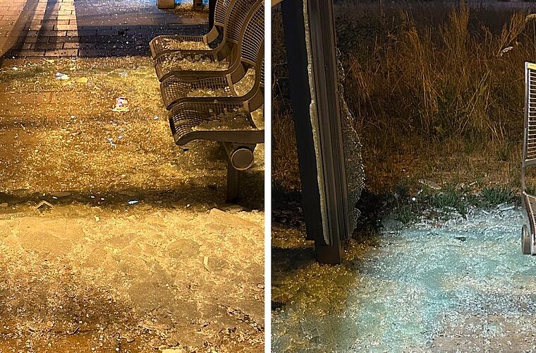 Insgesamt neun Glasscheiben von Wetterschutzhäuschen und Unterständen an den Bahnsteigen 1 und 3 komplett zerstört, zudem wurde eine Vitrine beschädigt. Vermutlich wurde dafür "ein Schotterstein zweckentfremdet". Die Scherben wurden von der örtlichen Feuerwehr beseitigt, damit sich niemand daran verletzt.