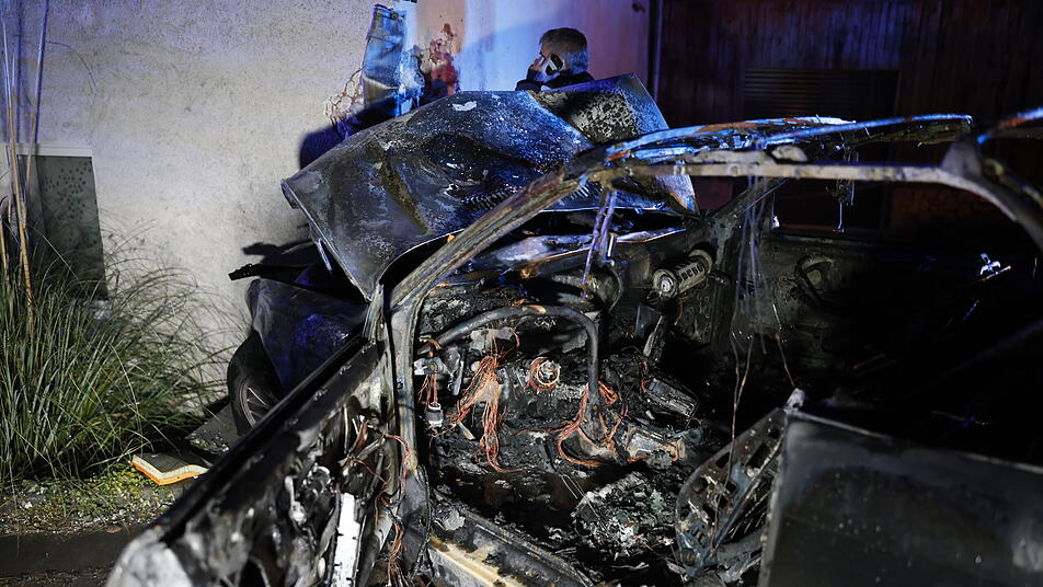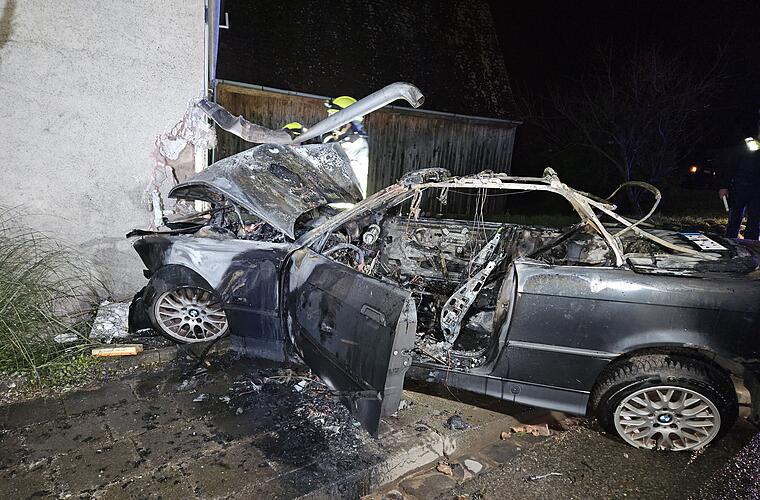In Stein im Landkreis Fürth kollidierte am Samstag ein 27-jähriger Autofahrer mit einer Hauswand. Der Mann wurde verletzt. Das Auto brannte aus. Laut Polizei war der Fahrer betrunken.