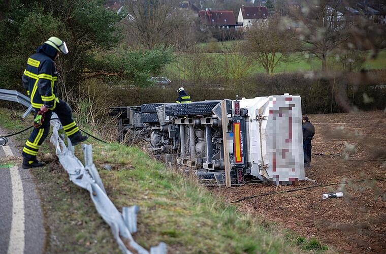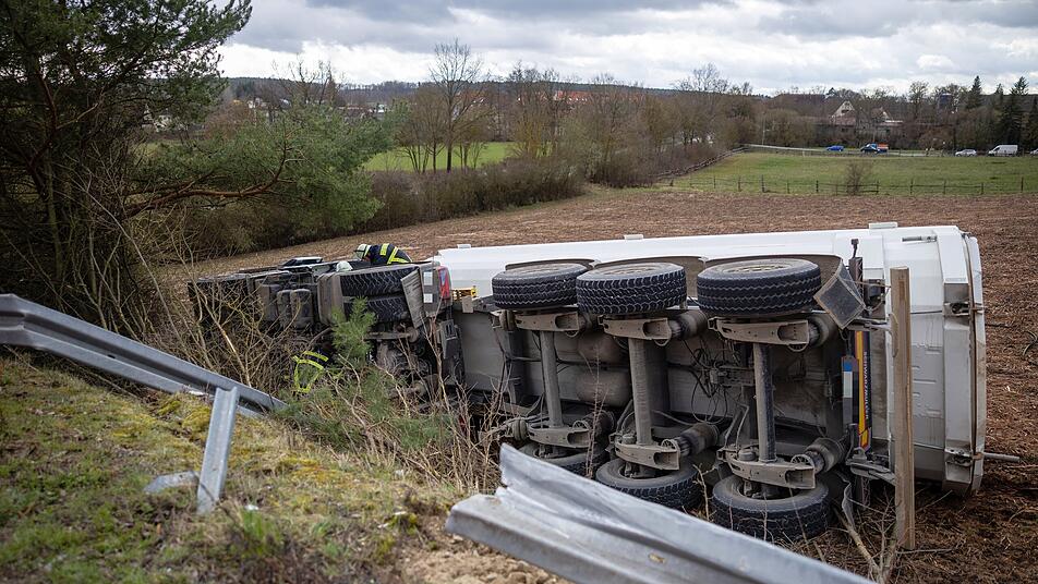 In Mittelfranken ist es am Montagnachmittag zu einem tödlichen Unfall gekommen. Ein Lkw kam von der Straße ab und kippte um, der Fahrer starb noch vor Ort.