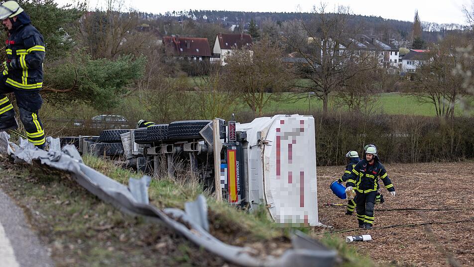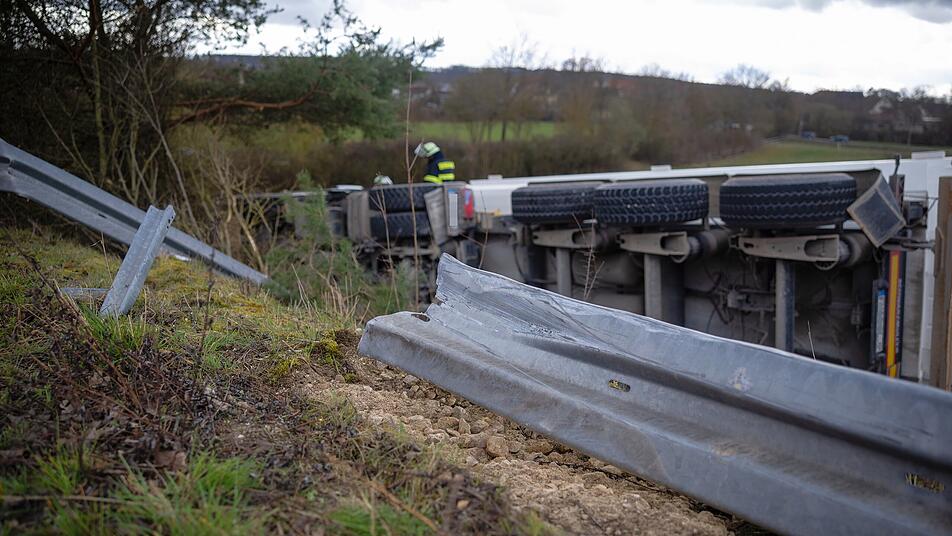 Zirndorf-Leichendorf: Lastwagen durchbricht Leitplanke und kippt um
