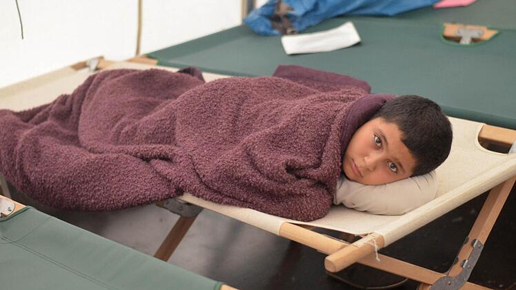 Derweil tappst AJ unbeholfen mit seinem Bündel unter dem Arm durch die endlosen Reihen der Feldbetten. Wer an den Spruch glaubt, in der kleinsten Hütte sei genügend Platz, dem werden diese Zelte eine Lehre sein. Personal ist weit und breit nicht zu sehen. In dem Kabuff mit den Wasserlachen und den Waschmaschinen findet AJ einen Hausmeister. "Ich kann leider auch nicht helfen. Wir sind sieben Hausmeister für 1600 Leute. Wir schauen, dass wir den Laden einigermaßen am Laufen halten." Mehr sei nicht drin.