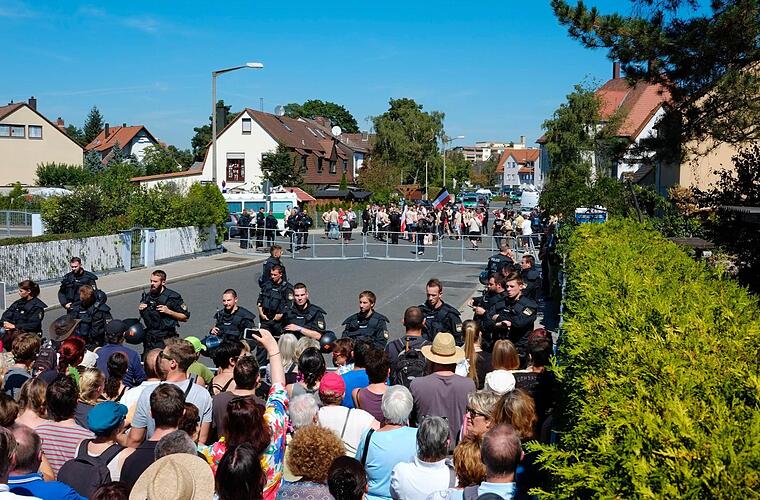Gegen 13 Uhr trafen von der Polizei begleitet rund 80 Demonstranten aus der rechtsextremen Szene am Versammlungsort im Fürther Stadtteil Ronhof ein. Sie sind nach Angaben der Polizei mit einem Linienbus zum Versammlungsort gebracht worden. Dort wurden die Rechten von den Gegendemonstranten mit einem großen Pfeifkonzert und "Haut ab!"-Rufen empfangen.