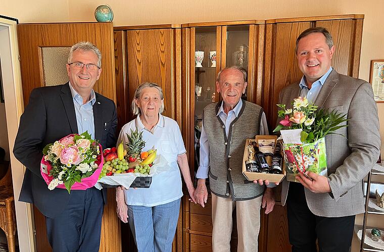 Das Ehepaar Gertrud und Andreas Zeilinger aus Stein sind beachtliche 70 Jahre verheiratet. Landrat Bernd Obst und Steins Erster Bürgermeister Kurt Krömer überbrachten Glückwünsche und Geschenke anlässlich ihrer Gnadenhochzeit.