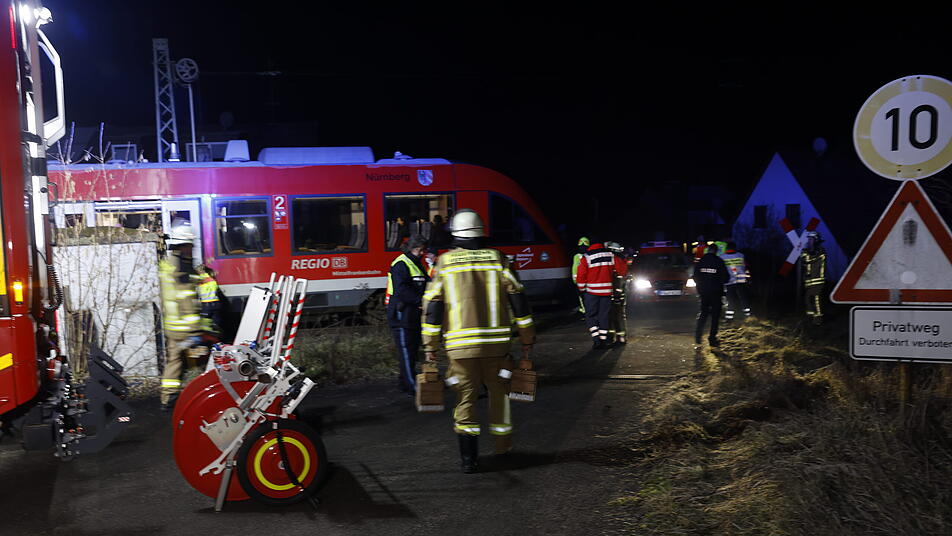 Am Freitagabend (20.01.2023) kam es an einem unbeschrankten Bahnübergang in Veitsbronn (Lkrs. Fürth) zu einem Unfall zwischen einer Regionalbahn und einem Auto.