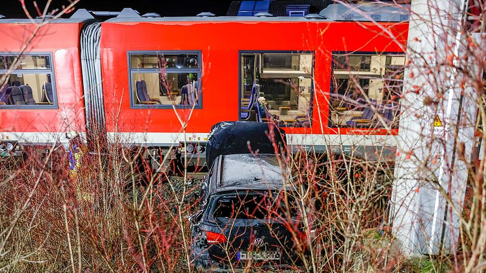 In Veitsbronn im Kreis Fürth ist ein Auto von einem Zug erfasst worden. Wie durch ein Wunder ist niemandem etwas passiert.