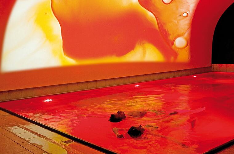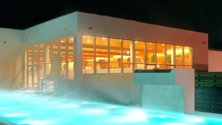 Der Badebereich des Fürthermare besteht aus mehreren Innen- und Außenbecken. Die Badegäste können hier bei Unterwassermusik und beruhigenden Lichtspielen die Seele baumeln lassen.