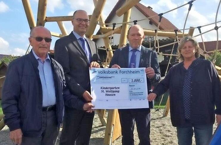 Die Anschaffung eines Klettergerüstes für den Spielplatz am Kindergarten St. Wolfgang in Hausen hat der katholische Männerverein St. Wolfgang mit einer 1000-Euro-Spende unterstützt.