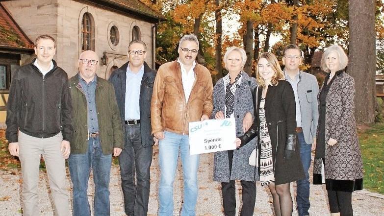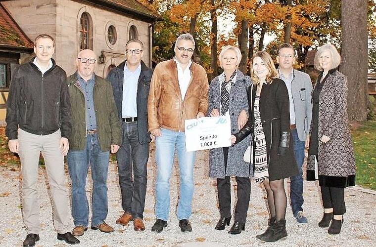 Adelsdorf das Schlossgartenfest im Schloss Adelsdorf - eine liebgewonnene Tradition, die vom 1993 verstorbenen Freiherrn von Bibra mitinitiiert worden war. Nicht nur aus diesem Grund fühlt sich die CSU mit dem Schloss verbunden, auch an den seit einigen Jahren im Schloss stattfindenden Weihnachtsmärkten ist der Ortsverband mit Ständen der Frauen Union und der Jungen Union vertreten. "Das Schloss bietet nicht nur uns, sondern allen Bürgern Adelsdorfs die Möglichkeit in geselliger und kultureller Atmosphäre zusammen zu kommen", betont der Erste Vorsitzende der CSU Adelsdorf, Matthias Goß. Seine Stellvertreterin Karin Frank ergänzt: "Wir möchten einen Beitrag zur Erhaltung des Schlossareals leisten und haben beschlossen, aus dem Erlös unseres Standes an der Schlossweihnacht 1000 Euro an die Stiftung Schloss Adelsdorf zu überreichen."