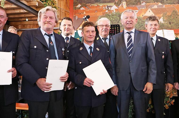 Drei Tage lang feierten die Einwohner mit vielen Gästen das 125. Jubiläum der Freiwilligen Feuerwehr. Die Jubiläumsfeierlichkeiten waren der Beweis für den Gemeinschaftssinn und den guten Zusammenhalt in dem kleinen Dorf mit 218 Einwohnern. Absoluter Höhepunkt war der große Festumzug am Sonntag. 31 Gruppen, darunter die Ehrengäste, Feuerwehren und Vereine, zogen mit ihren Fahnenabordnungen durch den Ort. Vier Musikkapellen - der Musikverein Rattelsdorf, die Ebinger Blaskapelle, die Blaskapelle Mürsbach und der Musikverein Breitengüßbach - sorgten für die entsprechende musikalische Begleitung bei der Runde durch das Dorf. Bei strahlend blauem Himmel säumten zahlreiche Gäste die Straßen und genossen das festliche Bild. Der Umzug endete im Festzelt.