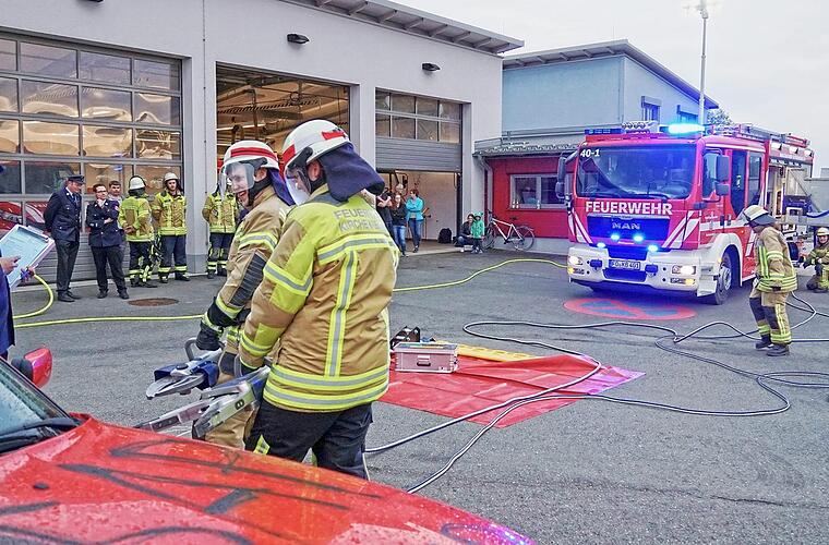 Als Schiedsrichter fungierten die Kreisbrandinspektoren Johannes Schmitt und Ernst Messingschlager sowie Kreisbrandmeister Florian Burkhardt. Sie und auch Kreisbrandrat Oliver Flake, der der Prüfung beiwohnte, lobten die fehlerfreie und tadellose Leistung der Einsatzkräfte.