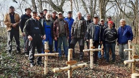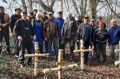Wie so oft, waren es wieder einmal die Rentner von Frankenbrunn, die dem Dorfkern um die Kirche und den Gedenkfriedhof an der Michaelskapelle einen Frühjahrsputz verliehen haben. Stattliche 18 Personen beteiligten sich an der Reinigungsaktion. In zwei Gruppen ging es ans Werk. Eine Gruppe nahm sich den Bereich Kirchplatz und Brunnen gegenüber der Kirche vor. Hier wurden Sträucher zurückgeschnitten, das Laub und herumliegende Äste der letzten Stürme beseitigt, also rundum alles aufgefrischt. Die zweite Gruppe erneuerte die Birkenkreuze am Gedenkfriedhof für die Gefallenen des 1.Weltkrieges an der Michaelskapelle und sorgte auch dort für frisches Aussehen im ganzen Bereich. Nach zwei Stunden waren die Arbeiten erledigt und die Krieger- und Soldatenkameradschaft, die Wandergruppe und die Kirchenverwaltung Frankenbrunn bedankten sich bei den Helfern und sorgten für das leibliche Wohl nach getaner Arbeit. Alle waren sich einig, dass die Gemeinschaft, Hilfe und Unterstützung bei den Rentnern im Ort bemerkenswert sei. red
