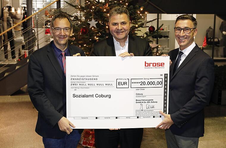 Bei der Spendenübergabe betonte Jörg Schwitalla, Geschäftsführer Personal der Brose Gruppe: "Die Weihnachtsspende an die Stadt Coburg steht ganz in der Tradition unseres Firmengründers Max Brose. Damit zeigen wir, welchen Stellenwert soziale Verantwortung in unserem Familienunternehmen hat. Das gilt unseren Mitarbeitern gegenüber ebenso wie Menschen im Umfeld unserer weltweiten Standorte." Die Weihnachtsspende ist ein Bestandteil des Engagements von Brose für Sport, Kultur, Bildung und Sozialwesen.