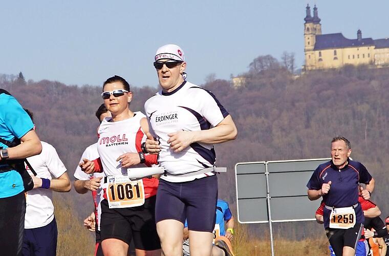 Punkt 8.30 Uhr schickte der Starter die Marathonis auf ihre beschwerliche "Reise" über 42 Kilometer rund um die Badstadt. Diese Strecke gehört zu den anspruchsvollsten und landschaftlich schönsten Marathonstrecken Deutschlands. Dieser Parcours beinhaltet drei enorm schwer zu laufende Anstiege zu den drei großen Sehenswürdigkeiten der Region - der Gottesgarten mit Kloster Banz, die Wallfahrtsbasilika Vierzehnheiligen und der Staffelberg. Felix Mayerhofer vom DJK Dasswang wiederholte seinen Vorjahressieg. Der Lehrer einer Kronacher Realschule lief vom Start weg ein einsames Rennen und ließ in 2:49:47 Stunden Lokalmatador Uwe Bäuerlein (TSV Staffelstein, 2:58:08 Stunden) keine Chance. Auf Platz 6 landete der Sieger der Klasse M20, Dominik Westhäuser vom ASC Marktrodach.