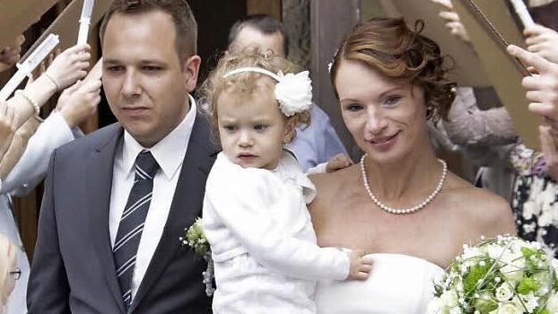 Ein schönes Datum Nach dem Jawort durfte sich das Brautpaar offiziell küssen, ehe beide den Ehevertrag - Sabrina erstmals mit dem Namen ihres Mannes - unterschrieben. Danach schritt das Paar durch ein Spalier ihrer Freunde. Das Datum, den 15. 5. 15, betonte der frisch gebackene Ehemann,