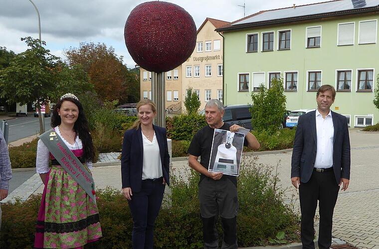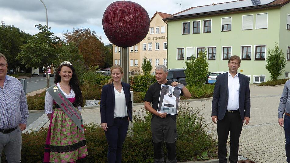 Das ausgelobte Preisgeld in Höhe von 500 Euro übergab Landrat Hermann Ulm an den "Kirschenkönig 2020", Werner Baierlein, auf dem Gelände des Obstgroßmarktes Igensdorf im Beisein von Kirschenkönigin Rebecca I. sowie der Geschäftsführer Tina Weißhaupt vom Obstgroßmarkt Igensdorf und Manuel Rauch vom Obstgroßmarkt Pretzfeld und Dirk Doppelstein vom Obstgroßmarkt Mittelehrenbach. red