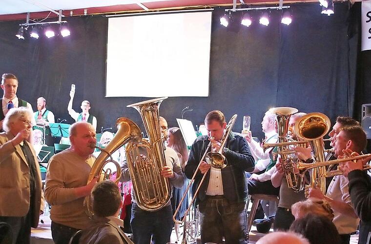 Im zweiten Teil dominierte eine moderne Mischung aus Schlager-, Pop- und Rockmelodien das Programm. Zudem gab es eine Wette. Bürgermeister Martin Mittag (CSU) nutzte die Gelegenheit, wieder einmal die Posaune zu blasen, und bewies anschließend Talent zum Dirigieren, als Michael Bauer ihm bei "Conquest of Paradise" das Pult überließ. Nach fast drei Stunden bester Unterhaltung ließen die begeisterten Zuhörer die 35 Musiker nicht ohne Zugabe von der Bühne.