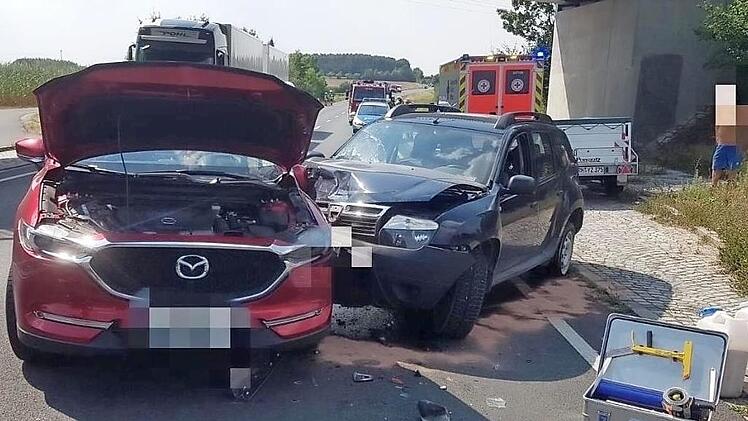 Ein Gesamtschaden von circa 40 000 Euro entstand bei einem Verkehrsunfall, der sich am Montag um 14.45 Uhr auf der B 470 ereignete. Ein 62-jähriger Dacia-Fahrer befuhr mit seinem Pkw/Anhänger-Gespann die B 470 in Fahrtrichtung Forchheim. Bei der Überführung Wiesendorf hielt er vorbildlich rechts auf dem dortigen Parkstreifen an, um zu telefonieren. Nachdem er das Gespräch beendet hatte, wollte er jedoch wenden, um zurück nach Neudorf zu fahren. Dabei übersah er die ebenfalls in Fahrtrichtung Forchheim fahrende Fahrerin eines Mazda, die frontal gegen die linke Front des Dacia fuhr. Der Dacia-Fahrer blieb unverletzt, die Fahrerin des Mazda wurde leicht verletzt ins Krankenhaus Höchstadt gebracht. Foto: FFW Adelsdorf