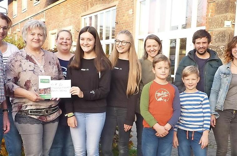 Eine Spende in Höhe von 500 Euro übergaben Schülerinnen des Mädchen-Cafés an das Ehepaar Evi und Günther Scheler aus Stockheim. Mit dem Geld wird die Ausbil...