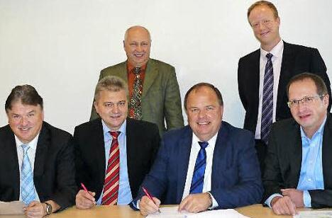 Bürgermeister Werner Burger und Friedrich Weinlein von der Telekom haben jetzt den Vertrag unterschrieben. Geschäftsstellenleiter Michael Laaber berichtete, dass er im November nachgefragt habe, ob Synergieeffekte möglich seien, weil die Stadt Helmbrechts und der Markt Marktleugast den gleichen Anbieter haben.